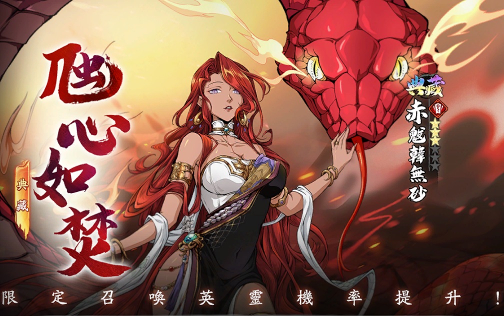 ➤典藏召喚「虺心如焚」復刻開啟,典藏英靈赤魃韓無砂召喚機率提升!