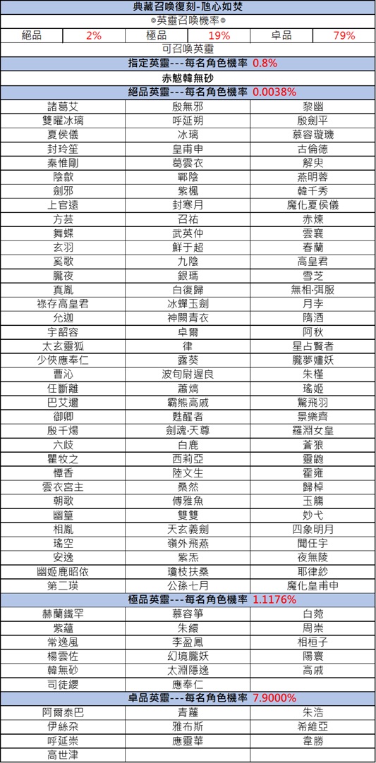 [1]、神魔特選卡池中,絕品英靈獲得機率為0.1%;