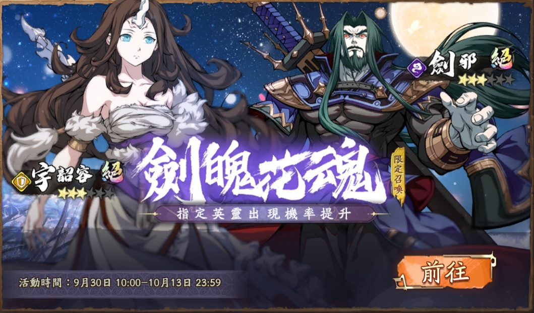 ➤劍魄花魂限定召喚開啟,絕品英靈宇韶容、劍邪召喚機率提升。
