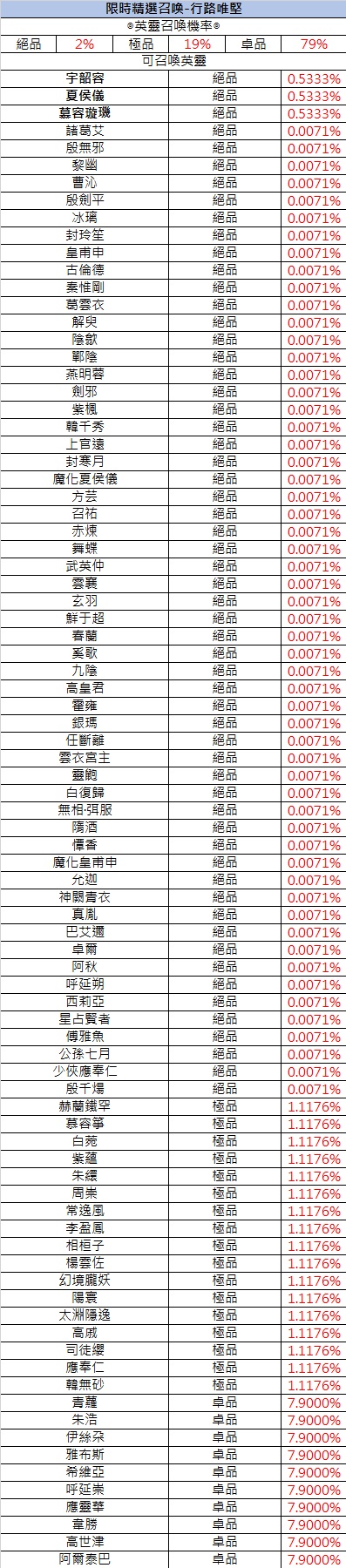 ➤行路唯堅限時精選開啟,您從本活動中召喚的首個絕品英靈,必為夏侯儀&宇韶容&慕蓉璇璣三名絕品英靈中您尚未獲得的英靈。