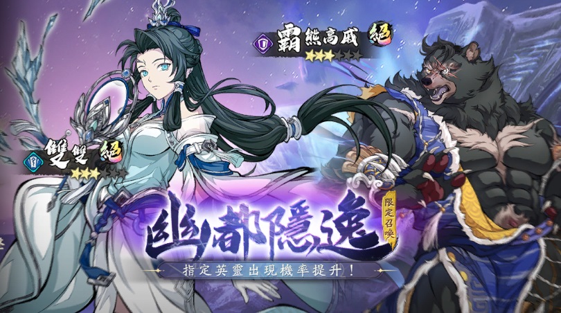 ➤限定召喚「幽都隱逸」開啟,絕品英靈霸熊高戚&絕品英靈雙雙召喚機率提升!