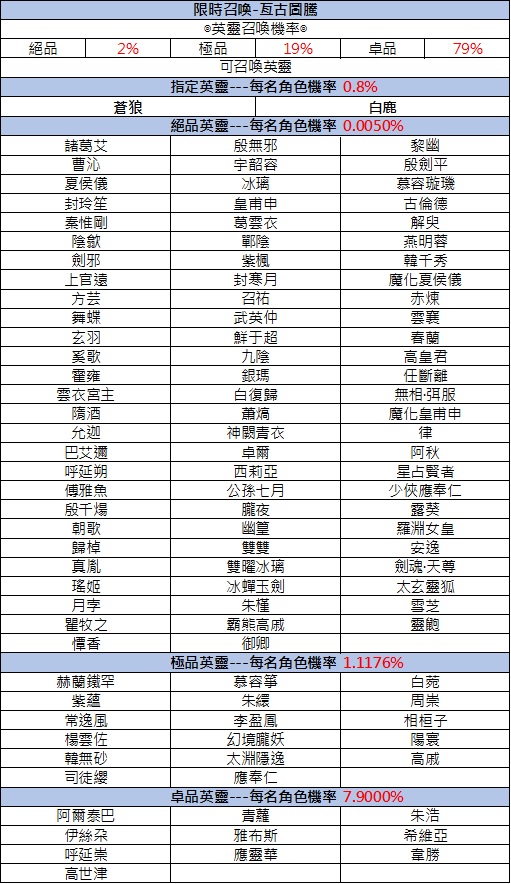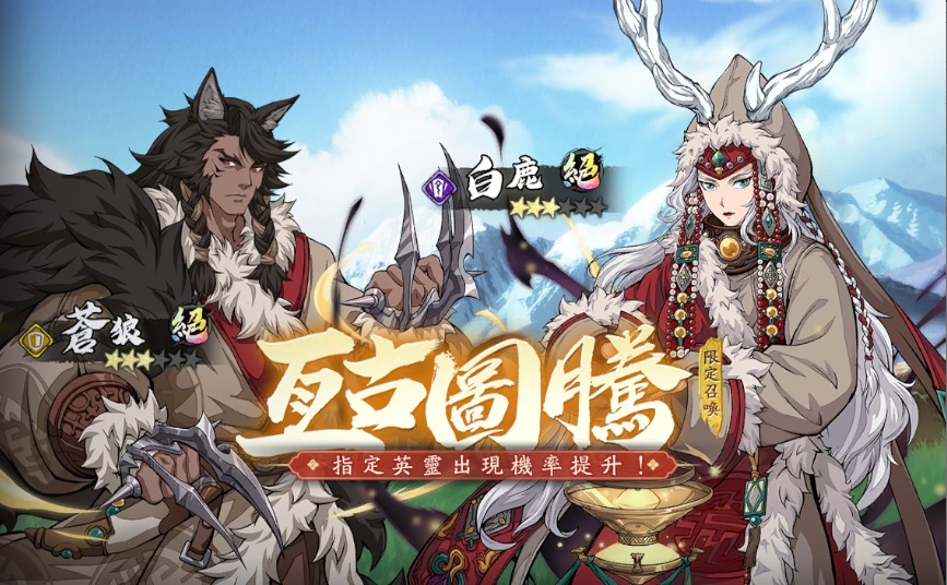 ➤限定召喚「亙古圖騰」開啟,絕品英靈白鹿&絕品英靈蒼狼召喚機率提升。